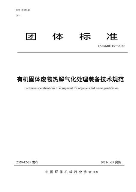 由中國環(huán)保機械行業(yè)協(xié)會歸口,中節(jié)能環(huán)保裝備股份有限公司(以下簡稱“中環(huán)裝備公司”)牽頭編制的團體標準《有機固廢熱解氣化處理裝備技術要求》(以下簡稱《標準》)經過立項答辯、標準起草、意見征求、專家審查等環(huán)節(jié),于2020年12月29日批準發(fā)布,這也是我國首個有機固廢熱解氣化處理裝備團體標準。