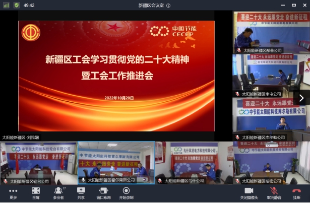 太陽能西中區(qū)、新疆區(qū)為深入學習宣傳貫徹黨的二十大精神,近日,各基層工會召開學習貫徹黨的二十大精神暨工會工作推進會,集中學習黨的二十大報告,就學習貫徹好黨的二十大精神提出工作要求,并對下一階段工會工作進行安排部署,在廣大干部職工中掀起學習討論熱潮。各級基層工會主席、委員參加會議。