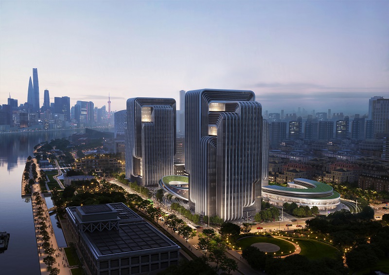 中節能·上海首座位于上海楊浦區濱江板塊,由扎哈·哈迪德建筑事務所擔綱首席設計團隊,以“魯班鎖”為設計藍本,整體建筑節能率預計超75%,旨在打造黃浦江畔新地標。